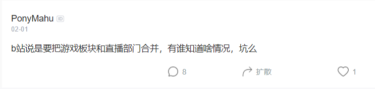 近日,脉脉职言的一则匿名贴称,B站游戏板块将与直播部门进行合并。