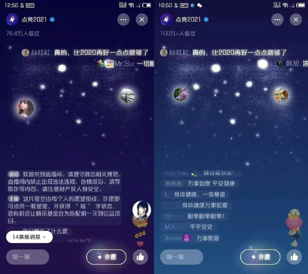 以视频号直播为例,今年张小龙在微信公开课上的演讲直播累计看过人数不足两百万,而在昨天微信通过各种官方渠道推流的“点亮2021”直播活动,一整天的累计观看人数不到80万。