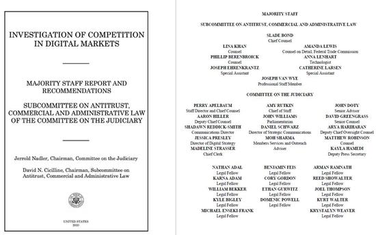 此外,小组委员会对现有的反托拉斯法,竞争政策及当前的执法行为进行了审查,以评估其是否足以解决数字市场(digital market)中的市场支配地位和反竞争行为。