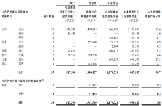 布局层面,尽管新星宇控股已入驻6个省份,除吉林省外,其在其他省份的项目都很零散。招股书披露,其有53.6%的土储位于长春,第二大城市则是山东威海,以3个项目占据17.2%的土储比例。
