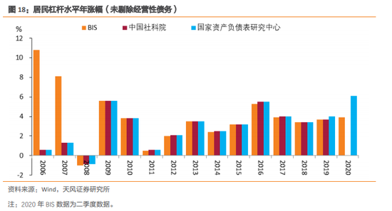 二、2017-2019年居民杠杆上升幅度放缓,2020年大幅提升,后续加杠杆空间已不大。2017-2019年在严监管和防风险下居民杠杆提升幅度较2016年有所下降,不过2020年在流动性相对宽松的环境下居民杠杆明显提升,且后续加杠杆空间已不大,这也与央行的宏观稳杠杆要求相符合。