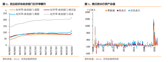 二、发达经济体宏观政策可持续性面临挑战。一方面,发达经济体财政赤字率较高,维持财政刺激力度面临挑战;另一方面,货币政策长期宽松,边际效用递减,反而加重资产价格泡沫、贫富分化和债务负担等问题。