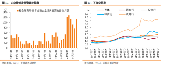 (4)防风险:2020年底防范化解重大金融风险攻坚战收尾,四季度报告已不再提及,转而强调“抓好存量风险化解收尾工作……坚决遏制各类风险反弹回潮”。此外,对于信用事件,除了要防止信用冲击蔓延,四季度报告还指出要“支持民营企业发行债券融资,增强金融服务实体经济能力”。