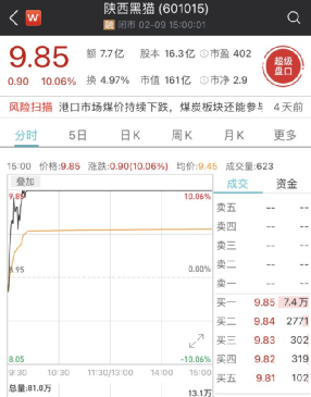 昨日开盘没多久,陕西黑猫就封涨停,报9.85元/股,总市值161亿。开年迄今,陕西黑猫已“吃”13个涨停板。