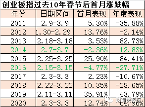 过去10年,创业板指在春节后一个月内,只有2年录得下跌,其余8年都是涨涨涨,上涨概率高达80%!