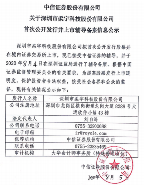 实际上,在近年来折叠屏走俏之际,柔宇科技的上市进程备受瞩目。2020年6月,柔宇科技的全程由“深圳市柔宇科技有限公司”变更为“深圳市柔宇科技股份有限公司”,注册资本自1.2亿元增至3.6亿元。股份制改造的完成,也被认为是柔宇科技冲击A股的一个信号。2020年8月初,深圳证监局公布柔宇科技接受上市辅导的备案信息。