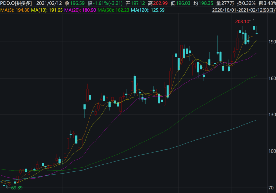 但是,从股价表现来看,这两只标的很不一样。拼多多在去年四季度一路震荡上扬,四季度到现在已经大涨了165.12%。值得注意的是,拼多多是新进入桥水前十大重仓股,可见桥水对其的看好。