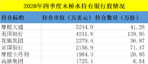 桥水买进摩根大通等多只银行股