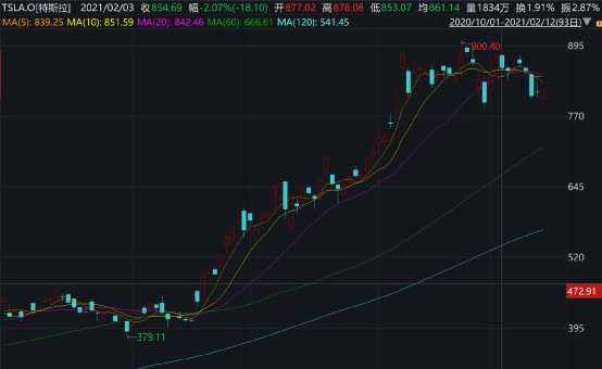 值得注意的是,在去年四季度,桥水基金清仓的标的中包括著名的电动车巨头特斯拉,桥水将其手中的3.565万股全部抛售。其实,特斯拉在2020年的涨幅高达743.44%,同时去年四季度到现在特斯拉也涨了90.23%,该股在去年四季度初低位震荡,但是11月中旬以后又出现一波凌厉的上涨,桥水将其清仓了,错过了后面的上涨。