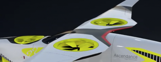在飞机的前部,有一个普通的螺旋桨,用于高效的水平飞行。倾斜旋翼相对复杂,像这种静态旋翼就很简单。简单就意味着便宜,由于Ascendance不会单纯依靠电池,所以效率就变得不那么重要了。