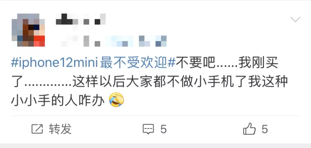 对于苹果12mini即将停产的消息,也有不少网友纷纷表示可惜,更有网友直呼“让手小的人怎么办”。