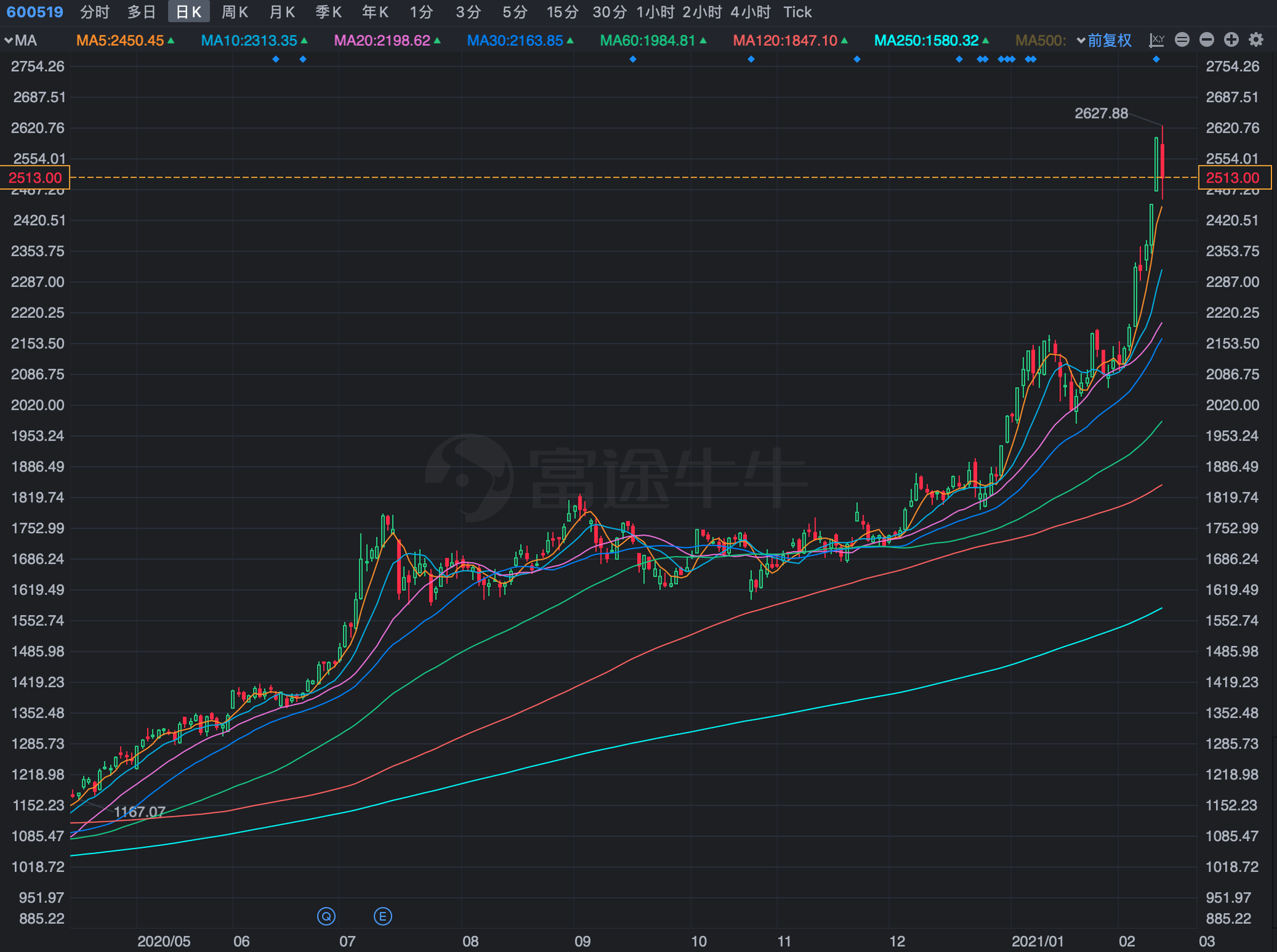 农历牛年第一个交易日,主力资金集中抛售白酒股,贵州茅台居然出现了罕见的重挫,盘中跌幅一度接近5%。