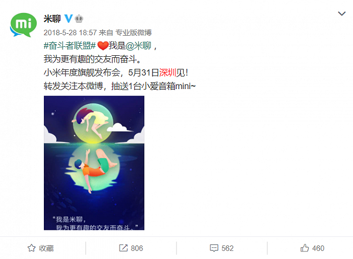 米聊官微发布的宣传微博