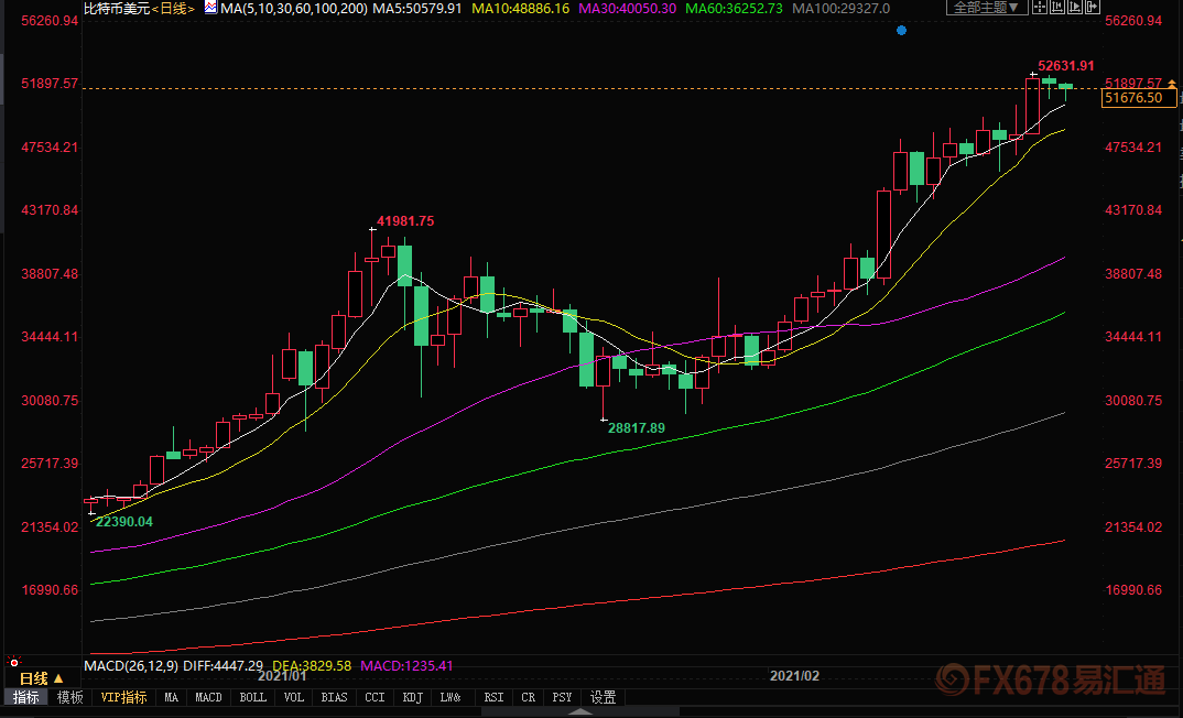 北京时间2月19日16:15,比特币先报51756.55美元/枚。