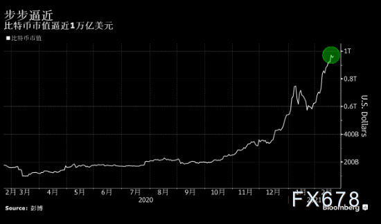 比特币的市值接近1万亿美元,加密货币表现远传统资产