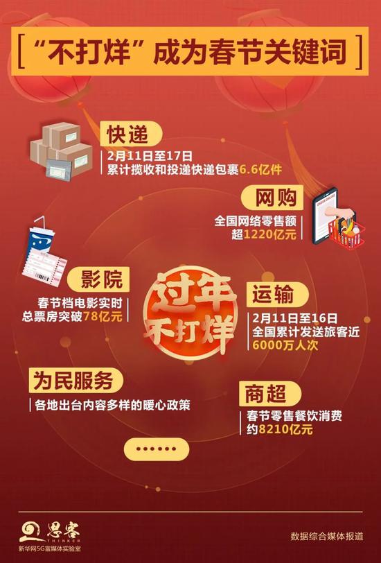 亮眼的不仅是零售餐饮数,还有快递数、网购数、电影票房数、文化旅游数……一系列创新高的数据让不少人感慨这个春节过得“好于预期”。