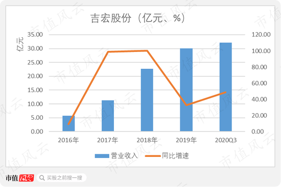 2019年,吉宏股份实现营业收入30.09亿元;2016-2019年期间的营收复合增长率高达74.14%。2020年前三季度的业绩更是已经超过2019年全年,实现32.16亿元。