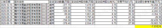 而赣州发展认购的股份,在2020年5月14日解禁之后,就开始了频繁减持。截至目前,已合计套现了7.23亿元。