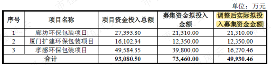 不过,吉宏股份原本打算募集7.35亿元,后来只募集到了5.16亿元,扣除发行费用后,只剩4.99亿元,最后只能无奈调整募投项目投入金额。