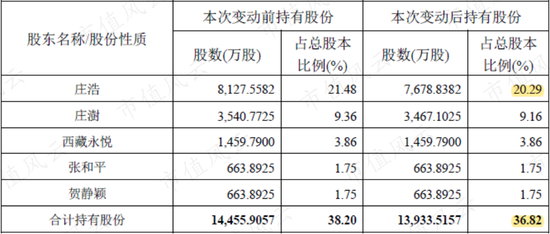 截至2020年12月31日的公告,庄浩及其一致行动人的持股比例已降至36.82%,而刚上市时,他们的持股比例高达60.34%。可见,解禁后的这段时间,着实减持了不少。