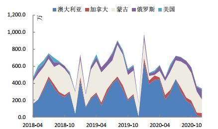 图9 炼焦煤进口主要来源国分布