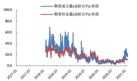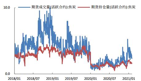 图2 焦煤主力合约成交量及持仓量
