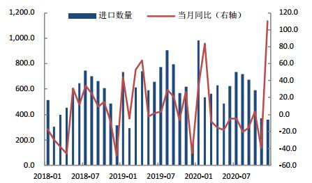 图10 炼焦煤进口数量年度对比