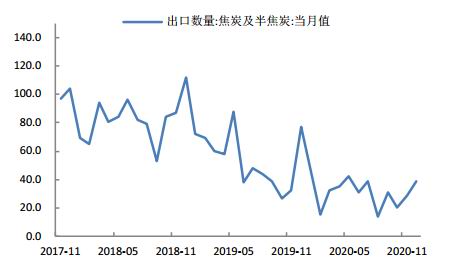图15 焦炭及半焦炭出口数量