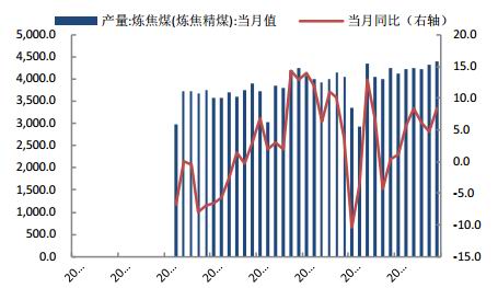 图7 炼焦煤产量与同比增速