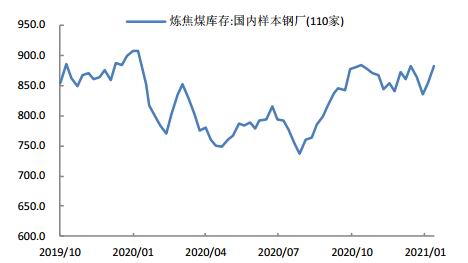 需求方面,1月末230家独立焦企样本开工率83.49%,剔除淘汰产能的利用率为90.08%,环比上周增0.64%;日均产量64.19万吨,增0.63万吨;下游开工率继续走高,焦化厂开工火热,需求保持旺盛。1月末,全国主要钢材社会库存1154.79万吨,较上周增加140.23万吨,较上月增加313.03万吨;钢材库存连续走高,消费量走低,终端需求季节性放缓。全国各地钢厂陆续开始停工检修,需求端走低,以致焦煤价格回落。