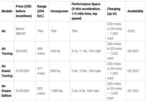 图二:Lucid旗下各车型信息