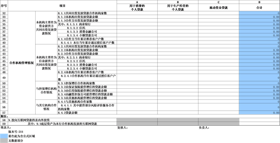 3.填报机构:大型商业银行(含邮储银行)、股份制商业银行、城市商业银行、民营银行、农村商业银行、外资法人银行、外国银行分行、消费金融公司、汽车金融公司。