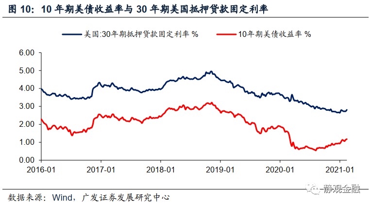 有何影响?Q2美地产销售降温、Q3美股调整。随着10年期美债收益率回升,30年期美国抵押贷款固定利率也有触底回升的苗头。购房成本上升叠加低库存等因素预计Q2美国地产销售将降温,年内美国地产关键词也将由销售转向投资。此外,预计拜登财政刺激3月中上旬落地,靴子落地前后美股或将再度Risk-on。但这也将是美国最后一轮抗疫刺激,叠加群体免疫前后美联储货币政策转向,因此Q2末到Q3初美股调整风险极大,且调整后美股也将迎来长期风格切换。