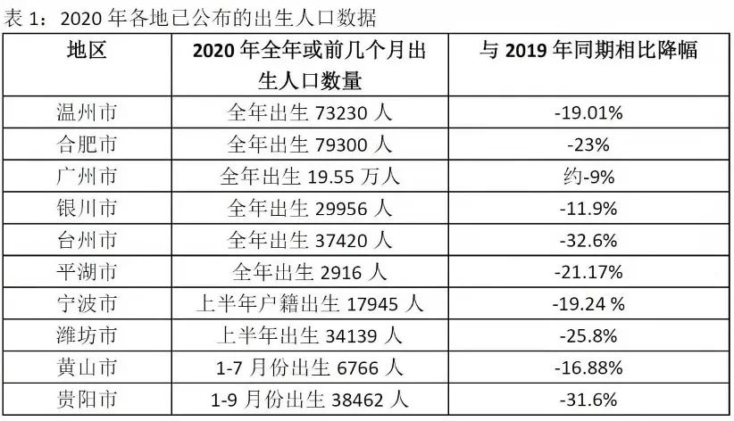 截至目前,2020年的全国出生人口数据尚未公布,但从各省数据看,形势不容乐观。温州、合肥、银川等多地2020年的出生人口数据(或活产数据),相比2019年下降幅度均超过10%。