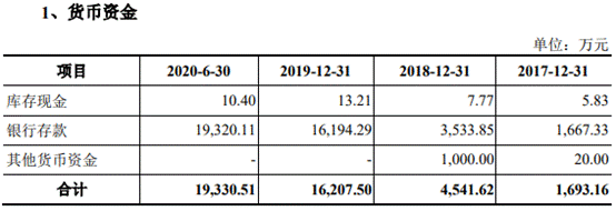 各期,公司货币资金分别为1693.16万元、4541.62万元、1.62亿元、1.93亿元。