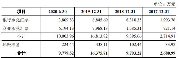 2017年-2019年及2020年上半年各期末,达嘉维康应收票据余额分别为0.27亿元、0.99亿元、1.68亿元、1.00亿元,坏账准备金额分别为33.92万元、102.44万元、438.11万元、224.44万元,应收票据账面价值分别为0.27亿元、0.98亿元、1.64亿元、0.98亿元。
