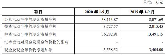 达嘉维康去年前三季度营收净利双降,经营净现金流依然为负数。2020年1-9月,达嘉维康营业收入为16.93亿元,同比下降9.45%;归属于母公司所有者的净利润为3009.32万元,同比下降56.18%;经营活动产生的现金流量净额为-3.81亿元,2019年1-9月同期为-8071.69万元。
