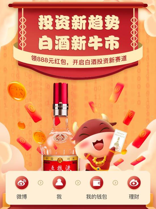 投资新趋势,白酒新牛市,五粮液数字酒证春节活动正在火热开售。本次活动由新浪理财平台发起,用户可通过新浪微博APP、新浪财经APP进行参与。即日起至2月26日,限时售卖2020年绝版数字酒证,售价1119元,还能100%领取888元红包。参与活动的同时,还可添加酒证小助手微信(sina058),获得数字酒证前沿资讯。
