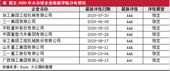截至2020年末,工程机械行业中12家进行过评级,其中有存续债券的发行主体共8家,7家为AAA级,1家为AA+级;2020年,工程机械行业的存续企业未发生主体级别调整。