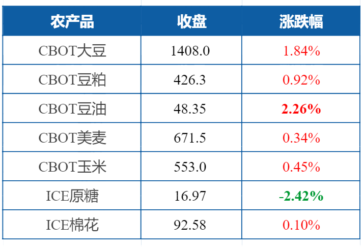 CBOT大豆期货周二攀升至一个月高点,因巴西大豆收获进展缓慢,突显市场对美国大豆供应下降的担忧。食用油和原油的广泛上涨也支撑了大豆等油籽的价格。玉米价格上涨至两周高点,因大豆收获推迟可能阻碍巴西主要玉米作物的种植。不过,小麦在反弹后下跌,交易商等待有关寒冷天气对美国农作物影响的进一步迹象。