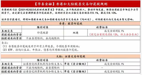 华兴证券(香港)首席经济学家兼首席策略分析师庞溟表示,印花税上调后,买卖双方合计将缴纳0.26%的印花税,相比A股(0.1%)、新加坡(0.2%)为高,仍低于英国(0.5%)。考虑到交易成本因素,这对个人投资者的交易意愿可能有一定影响,但对机构客户影响相对有限。