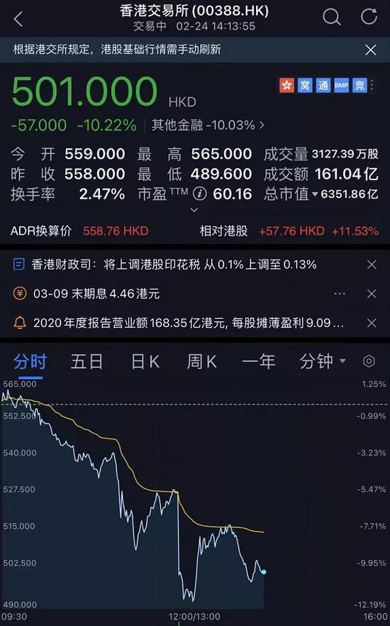 受消息影响,港交所的股价暴跌10%。在过去的2020年,港交所股票是港股恒生指数成分股中表现最牛的股票之一,2020年当年股价上涨约七成。2021年港交所股票进一步强劲上攻。