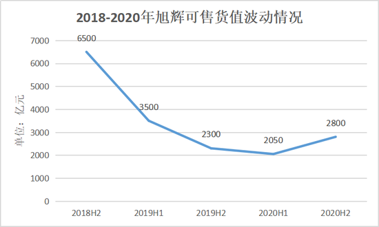 买地之外,土储转化同样压力不小。结合近些年财报数据,旭辉的可售货值正在不断下滑:2018年中期还有6500亿元的资源,到2019年已经下降至2050亿元。虽然2020年中期“补仓”至2800亿元,但恐怕也是难匹配未来增长的规模。