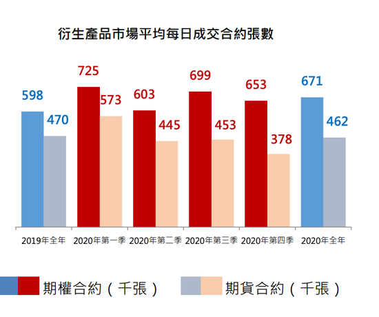年报显示,香港连续第14年蝉联全球最大结构性产品市场,证券化衍生品(包括衍生权证、牛熊证及界内证)总成交额达4.6亿港元,同比上升4%,2020年衍生产品成交合约数量创新高,合计2.82亿张。新推出的恒生科技指数期货及期权为投资者提供了管理投资香港上市科技公司风险的新工具,备受市场关注。