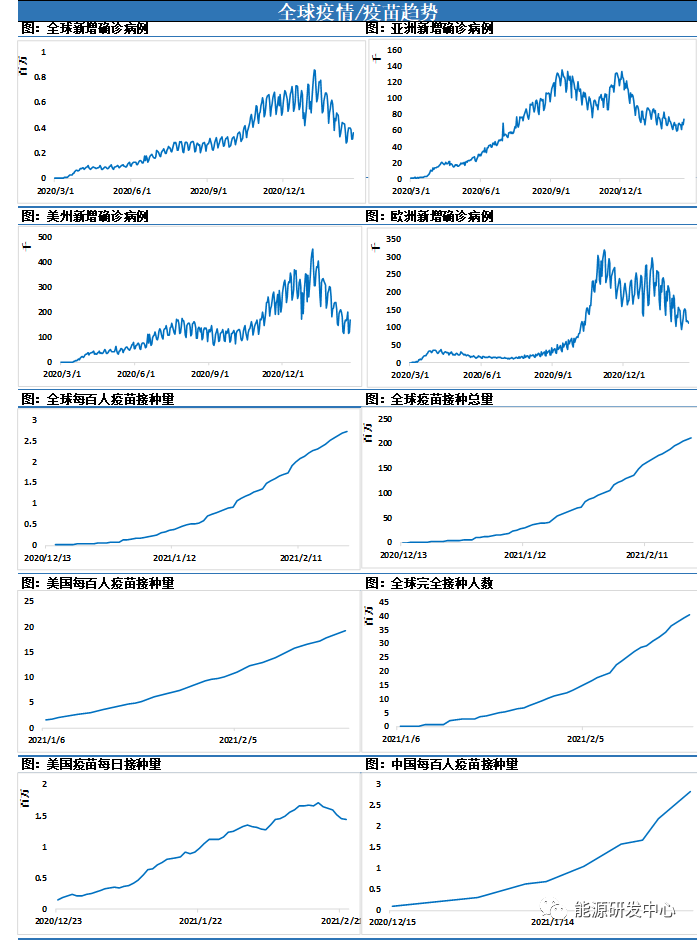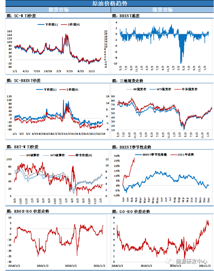 【2】油价涨跌互现,但仍守在一年高位附近;油价周二持稳,收在一年高点附近,有迹象表明全球各国正在放松疫情限制,尽管对美国经济复苏步伐和德克萨斯州石油产量恢复幅度的担忧抑制了涨幅;布伦特原油期货上涨0.13美元,或0.2%,收报每桶65.37美元;美国原油期货下跌0.03美元,收报每桶61.67美元,仍接近2020年1月以来最高水准;这两大合约稍早均上涨逾1美元,之后回落;美国南部的页岩油生产商和炼油商正在缓慢恢复生产。上周的冬季风暴导致200万桶/日石油产能和近20%的炼油产能关闭;休斯顿船运航道交通正逐渐恢复正常。然而,预计石油生产不会很快全面恢复,一些页岩生产商预计第一季度石油产量会下降;路透调查显示,寒流过后,上周美国原油库存料将连续第五周下降,成品油库存亦将下滑;Ritterbusch and Associates总裁Jim Ritterbusch表示,看来,上周的寒流和与之相关的得克萨斯州停电,可能会影响EIA的周度库存数据,直至下月中旬;高盛预计,布兰特原油价格将在第二季度升至每桶70美元,高于此前预测的60美元;第三季度升至75美元,高于此前预测的65美元