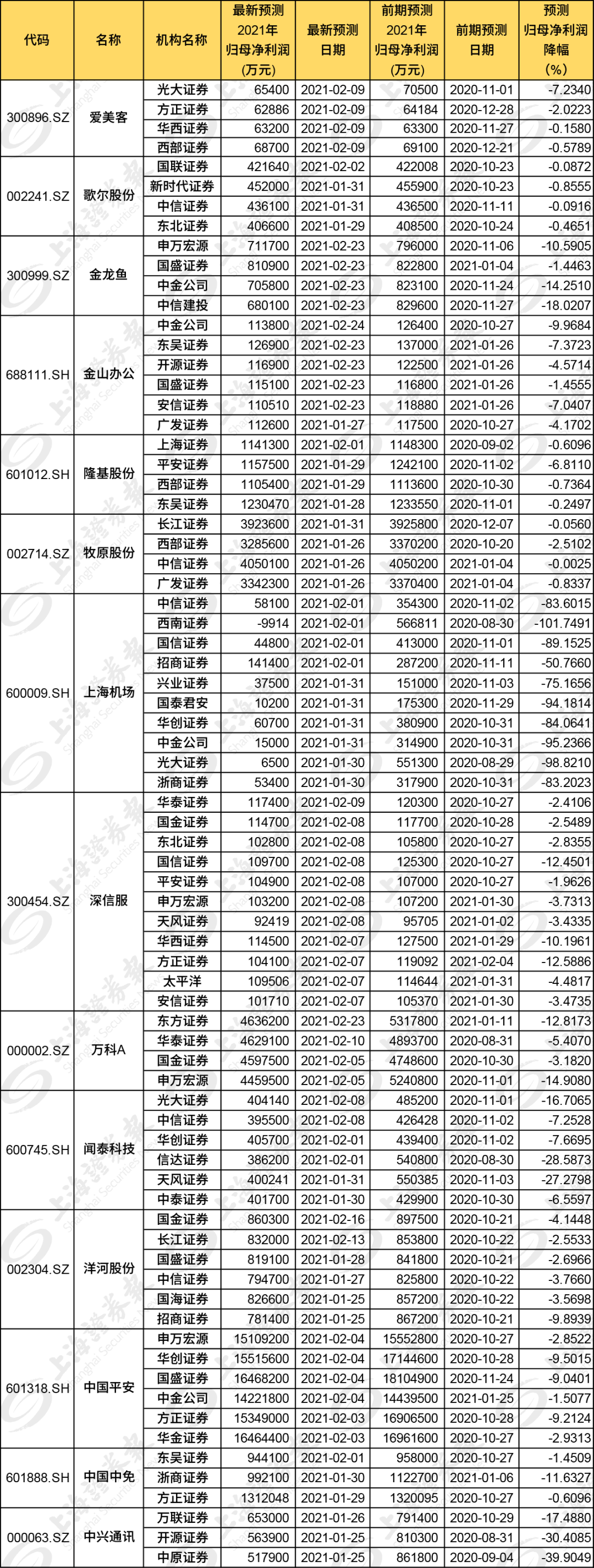 此外,还有歌尔股份、闻泰科技、洋河股份等一众公司被券商下调了盈利预期。(详见文末表格)