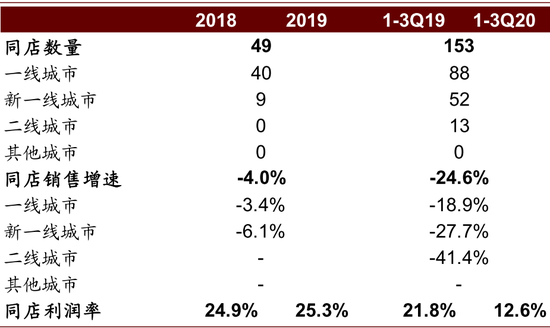 注:同店界定为符合以下条件的店:1)2018年及2019年开业时间均不少于300天,或2)截至2019年及2020年9月30日止九个月开业时间不少于225天(视情况而定)。同店利润为同店销售额扣除同店层面产生的经营成本,包括材料成本、员工成本、租金成本、折旧摊销、水电开支及配送费用。