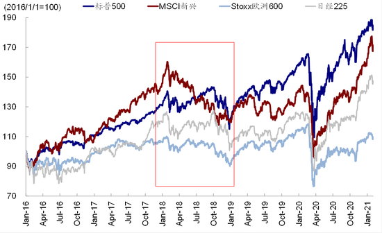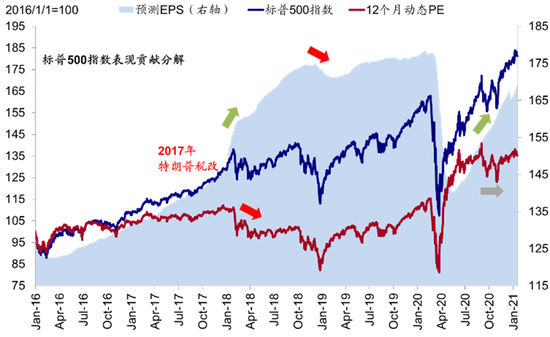 但是仍需要强调的是,拉长时间中期维度看,短期波动后,美股在基本面的支撑表依然能够反弹并再创新高,其背后的原因就在于2017年底税改对盈利的支撑;直到10月份利率继续走高且增长见顶后,市场才彻底见顶。在2月~3月经历了近2个月的盘整和波动后,美股从4月初见底反弹并再创新高,直到10月初在利率突破3%和增长见顶的双重压力下见顶,开启新一轮下跌。相比当时的其他市场比如中国市场,美股之所以还能够反弹并再创新高的根本原因在于2017年税改带来的对于企业盈利的额外推动,这一点其实他市场并不具备的,而当基本面的空间也被消耗殆尽后,市场便难以为继了。