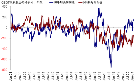 不过,隔夜利率突然加速上行,我们认为不排除与债券利率突破关键关口后触发一些锚定在此点位的仓位和衍生品、甚至程序化交易指令后的连锁反应,而并非完全的基本面因素,毕竟目前来看,美债长端利率的投机性头寸依然为净多头,利率的突然上行会使其面临压力。因此,这也我们提示短期需要关注突破关键关口后的原因(《利率上行的扰动:来自2018年的经验》)。