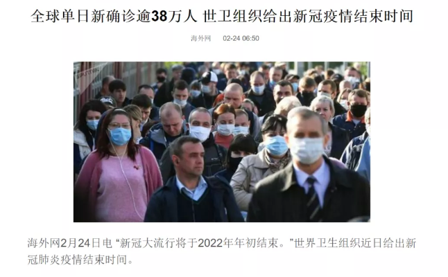 “新冠大流行将于2022年年初结束。”世界卫生组织近日给出新冠肺炎疫情结束时间。